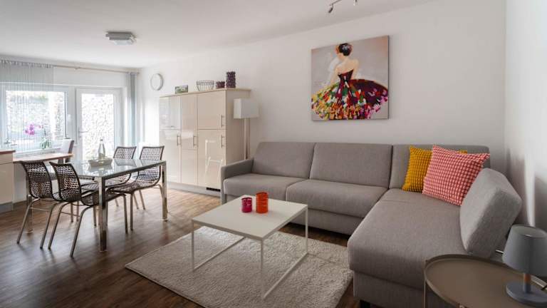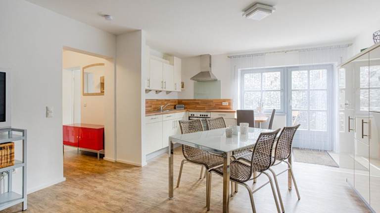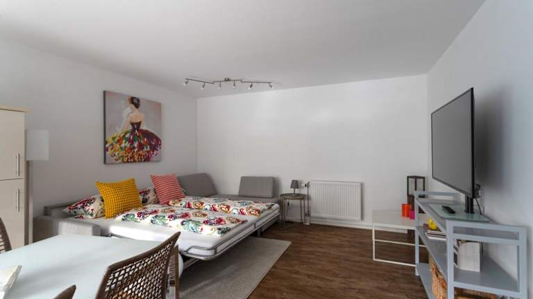 Die Ferienwohnung verfügt über 1 Schlafzimmer, ein Wohnzimmer, einen Flachbild-TV und eine gut ausgestattete Küche mit Kühlschrank und Geschirrspüler. Das Badezimmer ist mit einer Dusche ausgestattet. Handtücher und Bettwäsche sind in der Ferienwohnung verfügbar.