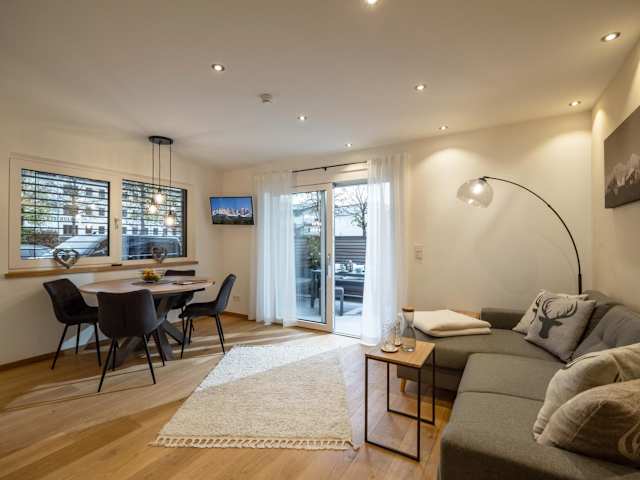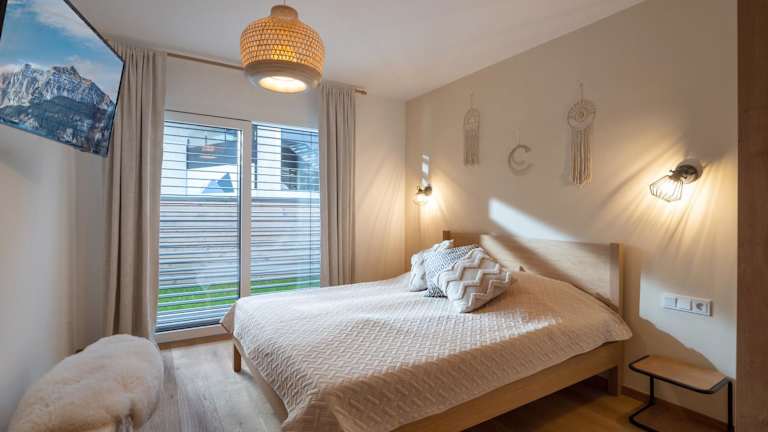 Die Ferienwohnung hat 2 Schlafzimmer, ein Wohnzimmer, einen Flachbild-TV und eine gut ausgestattete Küche mit Kühlschrank und Geschirrspüler. Ein Badezimmer mit Dusche ist ebenfalls vorhanden. Handtücher und Bettwäsche werden zur Verfügung gestellt. Außerdem gibt es eine Terrasse mit Blick auf die Berge.