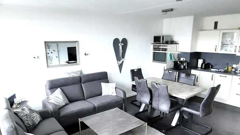 Die Ferienwohnung umfasst drei Schlafzimmer, die mit einem Flachbild-TV ausgestattet sind. Darüber hinaus sind zwei Badezimmer mit einer Dusche vorhanden. Für zusätzlichen Komfort können Handtücher und Bettwäsche gegen Aufpreis bereitgestellt werden.