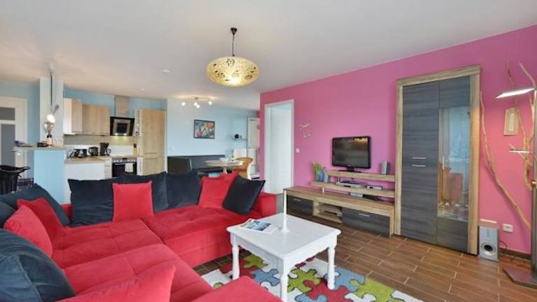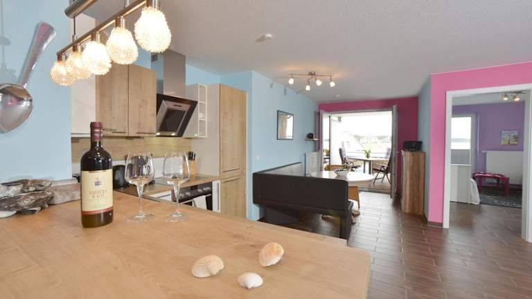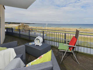 Die Ferienwohnung Traumstrand bietet geräumige und komfortable Zimmer. Die Wohnung verfügt über einen Balkon, auf dem die Gäste die frische Luft und den Meerblick genießen können. Im gemütlichen Sitzbereich können sich die Gäste entspannen und die Annehmlichkeiten der Wohnung nutzen. Die Küche ist komplett ausgestattet und bietet alles, was man für die Zubereitung von Mahlzeiten benötigt, einschließlich Geschirrspüler und Mikrowelle. Die Badezimmer sind modern und verfügen über Duschen.