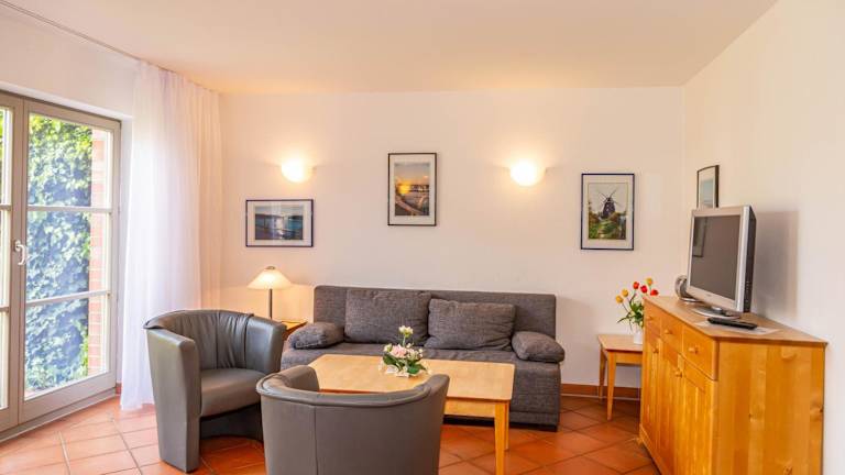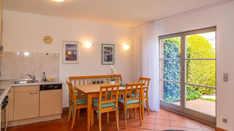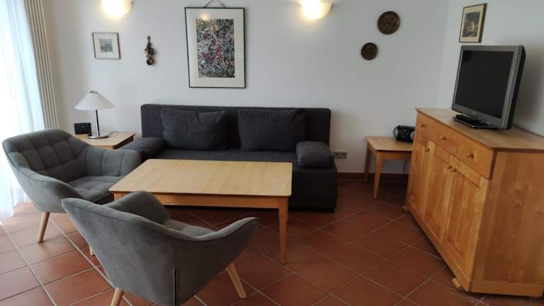 Die Unterkunft verfügt über zwei Schlafzimmer, ein Wohnzimmer und eine voll ausgestattete Küche mit Kühlschrank und Kaffeemaschine. Ein Badezimmer ist mit Dusche und Haartrockner ausgestattet. Handtücher und Bettwäsche werden bereitgestellt. Für längere Aufenthalte kann gegen einen Aufpreis eine Waschmaschine und ein Wäschetrockner genutzt werden.