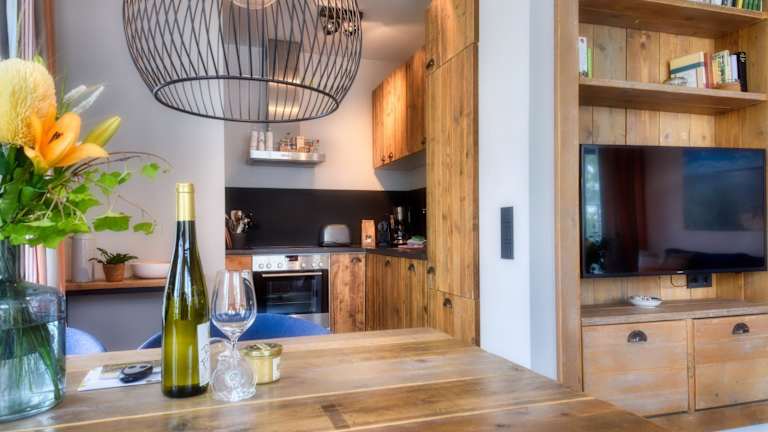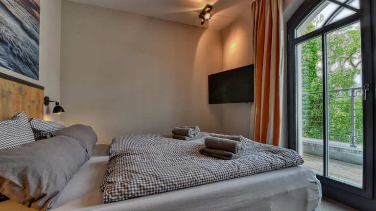 Die Ferienwohnung bietet Zugang zu einem Balkon und ist mit einem Schlafzimmer ausgestattet. Zur Einrichtung gehören ein Kühlschrank, ein Geschirrspüler sowie ein TV. Darüber hinaus stehen kostenfreies WLAN, Handtücher und Bettwäsche zur Verfügung. Es handelt sich um Nichtraucherzimmer.