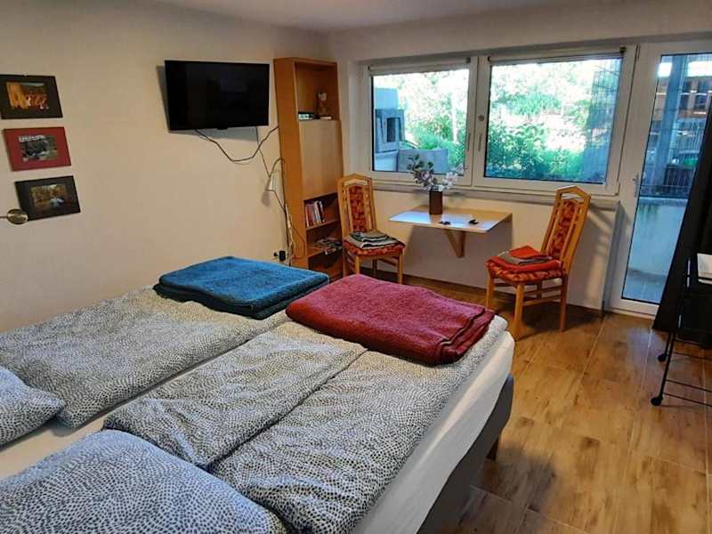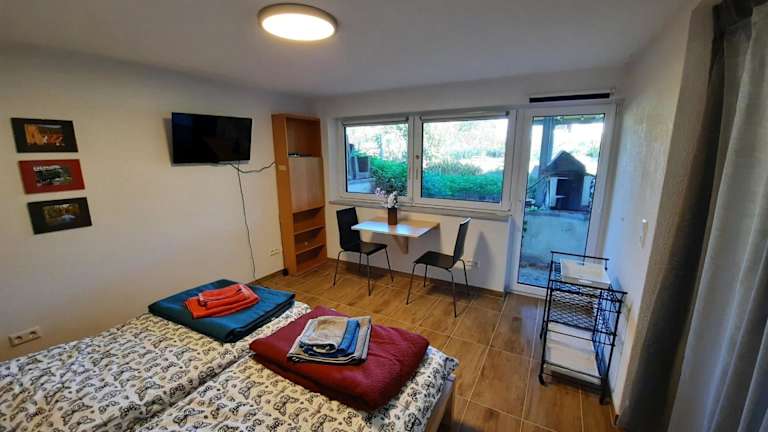 Die Ferienwohnung verfügt über ein Schlafzimmer, einen Flachbild-TV mit Satellitenkanälen, eine gut ausgestattete Küche mit Kühlschrank und Geschirrspüler sowie ein Badezimmer mit Dusche. Handtücher und Bettwäsche werden bereitgestellt.