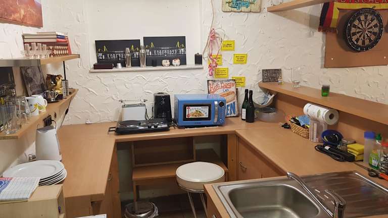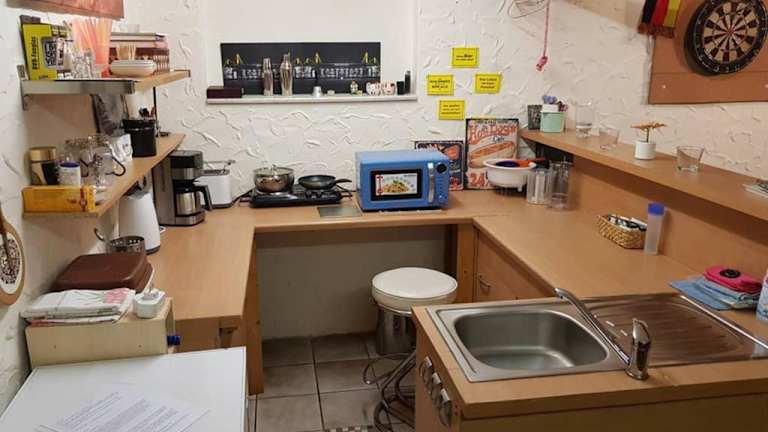Die Ferienwohnung und Monteurwohnung mit großer begehbarer Dusche verfügt über eine voll ausgestattete Küche, in der die Gäste ihre eigenen Mahlzeiten zubereiten können. Es gibt auch Restaurants und Einkaufsmöglichkeiten in der Nähe, falls die Gäste lieber auswärts essen möchten.