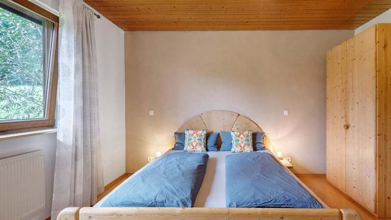 Die Ferienwohnung verfügt über zwei Schlafzimmer, ein Badezimmer sowie eine voll ausgestattete Küche. Zur Ausstattung gehören Bettwäsche, Handtücher und ein TV mit Satellitenkanälen. Ein Balkon mit Gartenblick ist ebenfalls vorhanden.