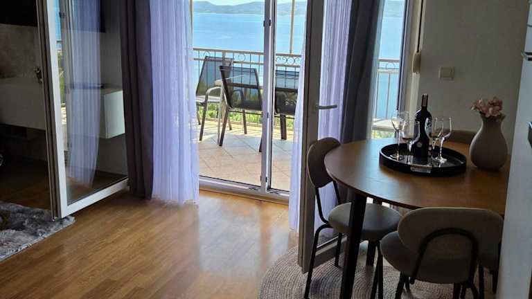 Die klimatisierten Unterkünfte in der VILA MARIJA sind komfortabel und bieten einen Balkon, von dem aus Sie die Umgebung genießen können. Die Apartments verfügen über eine Terrasse, Stadtblick, einen gemütlichen Sitzbereich und einen Flachbild-Sat-TV. Die voll ausgestattete Küche bietet Ihnen die Möglichkeit, Ihre eigenen Mahlzeiten zuzubereiten, und das eigene Bad ist mit einer Dusche ausgestattet. Zusätzliche Annehmlichkeiten wie ein Kochfeld, eine Kaffeemaschine und ein Wasserkocher stehen ebenfalls zur Verfügung.