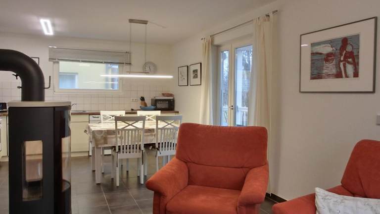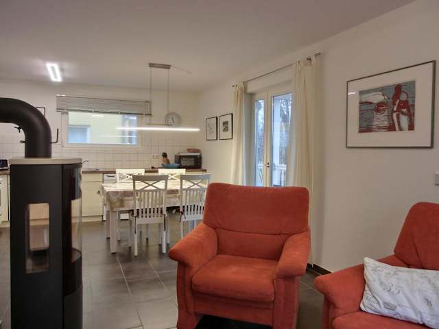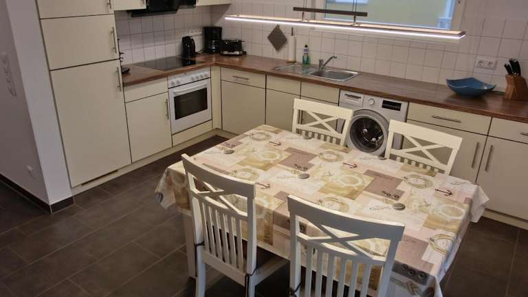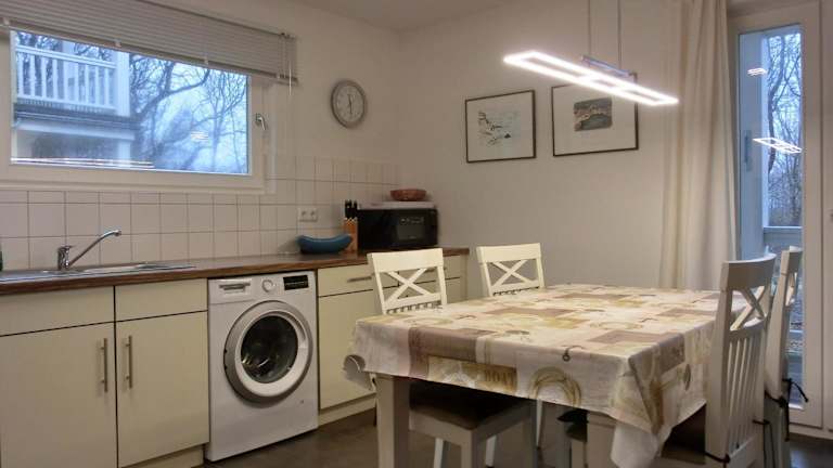 Die Ferienwohnung verfügt über zwei Schlafzimmer und einen TV. Zur Ausstattung gehört eine voll ausgestattete Küche, die einen Kühlschrank, Geschirrspüler, Waschmaschine, Ofen und Mikrowelle umfasst.