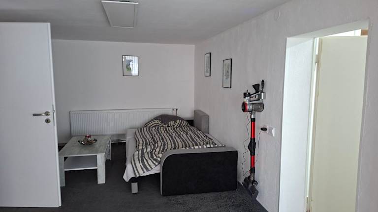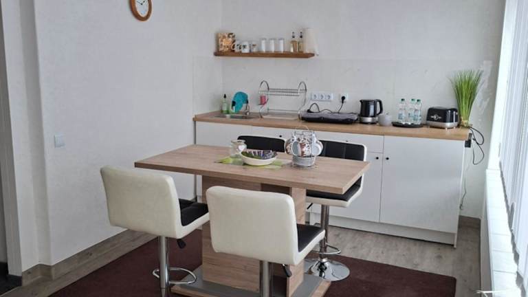 Die Ferienwohnung umfasst ein Schlafzimmer, ein Wohnzimmer sowie eine voll ausgestattete Küche mit Kühlschrank und Wasserkocher. Ein Badezimmer mit Dusche sowie Haartrockner ist ebenfalls vorhanden. Handtücher und Bettwäsche werden bereitgestellt. Die Unterkunft ist für Nichtraucher ausgelegt und bietet Familienzimmer sowie Zugang zu Spielgeräten für Kinder.