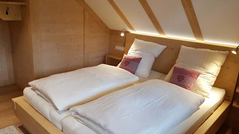 Die Ferienwohnung umfasst zwei getrennte Schlafzimmer, ein Wohnzimmer sowie eine voll ausgestattete Küche mit Kühlschrank und Kaffeemaschine. Zudem gibt es ein Badezimmer mit Dusche und Haartrockner. Handtücher und Bettwäsche werden bereitgestellt.