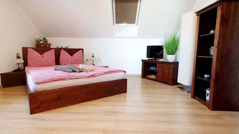 Die Ferienwohnung verfügt über ein Schlafzimmer sowie eine voll ausgestattete Küche mit Kühlschrank und Geschirrspüler. Ein Flachbild-TV und ein Sitzbereich sind ebenfalls vorhanden. Das Badezimmer ist mit einer Dusche ausgestattet. Handtücher und Bettwäsche werden bereitgestellt.