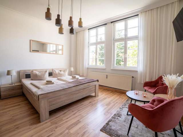 Die Ferienwohnung bietet eine komplette Selbstversorger-Ausstattung und ist ideal für Gäste, die eine zentrale Lage in Wernigerode bevorzugen. Die Unterkunft zeichnet sich durch kostenfreies WLAN und einen Privatparkplatz aus, der den Gästen zur Verfügung steht. Eine Nichtraucherpolitik wird in allen Bereichen der Unterkunft durchgesetzt. Die Unterkunft ist nicht für Junggesellen-/Junggesellinnenabschiede oder ähnliche Feiern geeignet, und Haustiere sind nicht gestattet.