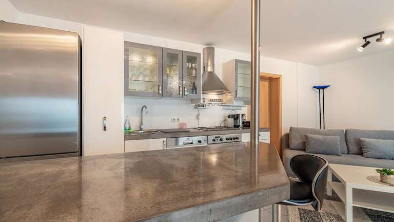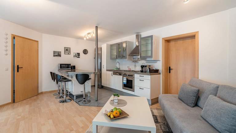 Die Küche der Ferienwohnung ist mit einem Kühlschrank, einem Geschirrspüler sowie einem Ofen ausgestattet. Weitere gastronomische Angebote werden in der Unterkunft nicht erwähnt.