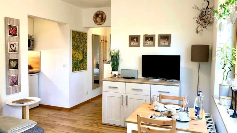 Die Unterkunft Ferienwohnung Worpswede am Berg bietet ein modernes Ambiente mit Zugang zu kostenloser Internetverbindung. Der Check-in ist zwischen 16:00 und 20:00 Uhr möglich, während der Check-out von 01:00 bis 11:00 Uhr erfolgt. Es ist zu beachten, dass Feiern wie Junggesellenabschiede nicht gestattet sind und eine Zahlung per Überweisung vor der Anreise erforderlich ist.