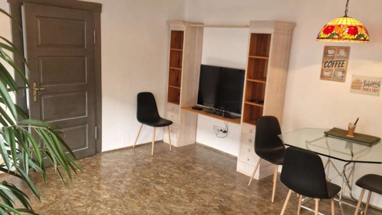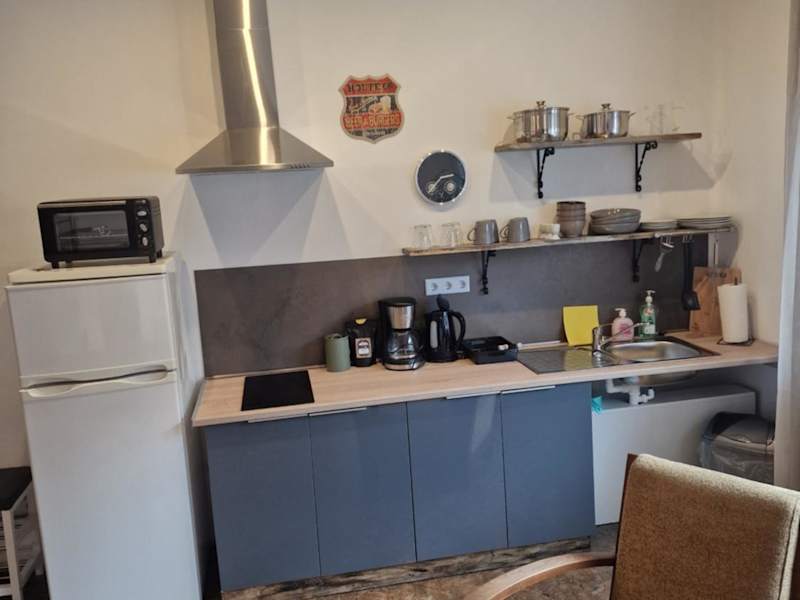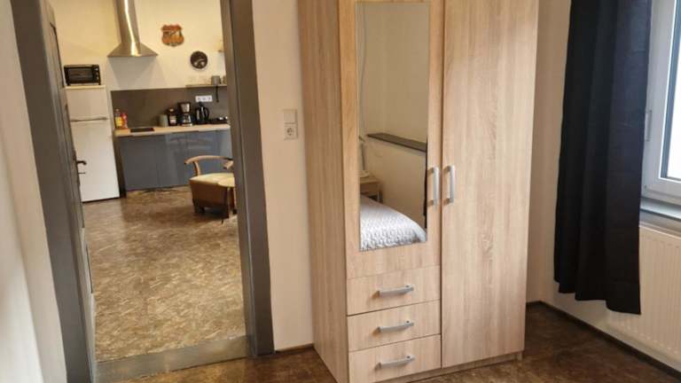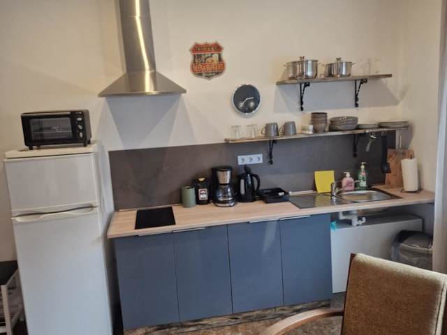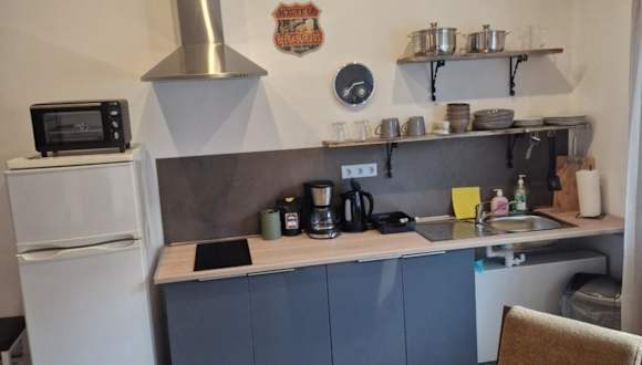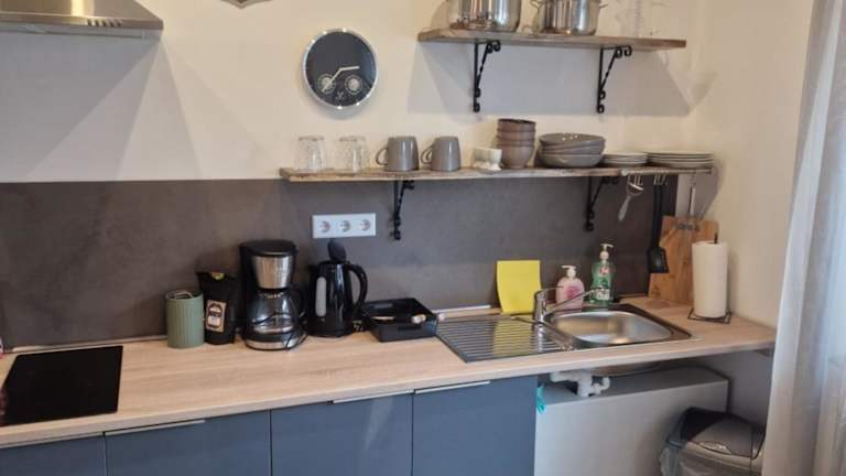 Die Ferienwohnung verfügt über ein Schlafzimmer, ein Wohnzimmer mit Flachbild-TV sowie eine voll ausgestattete Küchenzeile und ein Badezimmer.