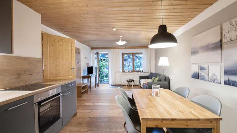 In der Ferienwohnung Zugspitze können Sie selbst kochen und Ihre Mahlzeiten in der voll ausgestatteten Küche zubereiten. Alternativ finden Sie in der Umgebung verschiedene Restaurants und Cafés, in denen Sie lokale Spezialitäten probieren können.