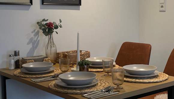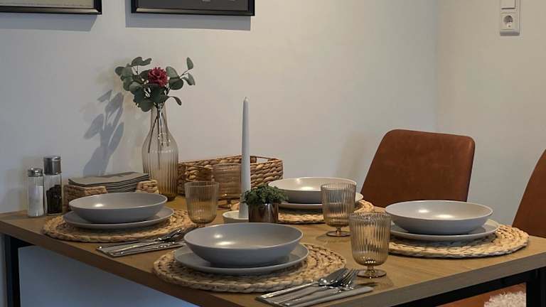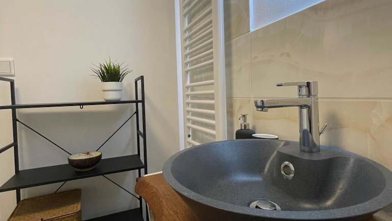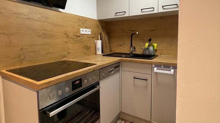 Die Ferienwohnung umfasst ein Schlafzimmer, ein Wohnzimmer sowie eine voll ausgestattete Küchenzeile mit Kühlschrank und Kaffeemaschine. Das Badezimmer ist mit einer Dusche und einem Haartrockner ausgestattet. Handtücher und Bettwäsche werden bereitgestellt.