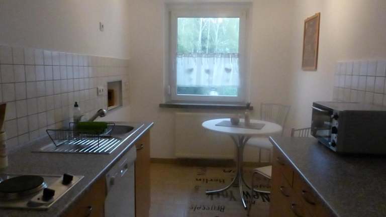 Die Ferienwohnung Zur Alten Eiche bietet ein gemütliches Schlafzimmer mit einem komfortablen Bett für eine erholsame Nachtruhe. Das Wohnzimmer lädt zum Entspannen ein und die voll ausgestattete Küche ermöglicht es Ihnen, Ihre eigenen Mahlzeiten zuzubereiten. Ein Kühlschrank und eine Kaffeemaschine stehen Ihnen zur Verfügung. Im Badezimmer finden Sie eine Dusche und einen Haartrockner. Zur Unterhaltung steht Ihnen ein Flachbild-Sat-TV zur Verfügung, und für Filmabende steht ein DVD-Player bereit.