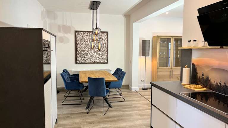 Die Ferienwohnung ist gemütlich eingerichtet, allerdings sind 3 Fernseher etwas zu viel. Die Raumaufteilung ist gut. Die Küche ist etwas klein, zumindest wenn man aufwendiger kochen will.