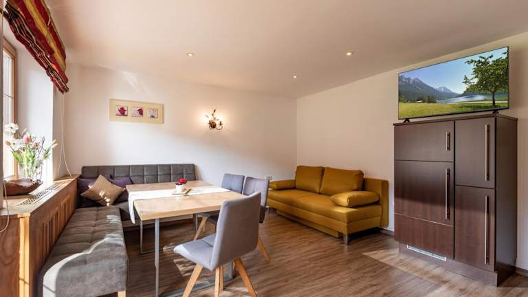 Die Apartments im Hotel Haus Alpenrose sind geräumig und komfortabel eingerichtet. Sie verfügen über mehrere Schlafzimmer, eine gut ausgestattete Küche mit Kühlschrank und Geschirrspüler, einen Flachbild-TV und einen gemütlichen Sitzbereich. Die Apartments bieten zudem einen Balkon, von dem aus Sie den Blick auf die umliegenden Berge genießen können. Handtücher und Bettwäsche werden gestellt, um Ihnen einen angenehmen Aufenthalt zu ermöglichen.