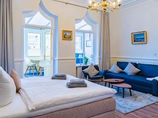 Die Zimmer sind ausgestattet mit einem Sitzbereich, einem Flachbild-TV sowie einem eigenen Badezimmer mit Dusche und Haartrockner. Die Küchenzeile umfasst einen Kühlschrank, Geschirrspüler, Mikrowelle, Herdplatte, Toaster, Kaffeemaschine und Wasserkocher. Bettwäsche und Handtücher können gegen Aufpreis bereitgestellt werden.
