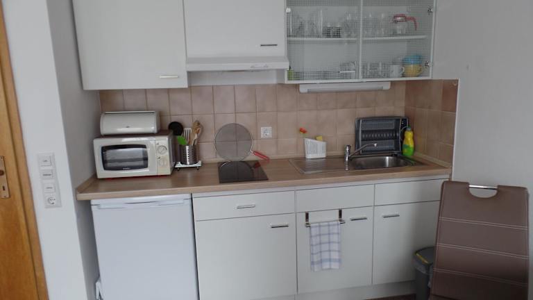 Das Apartment im Am Waldrand verfügt über ein gemütliches Schlafzimmer, ein Badezimmer und eine voll ausgestattete Küchenzeile. Für Ihren Komfort sind Bettwäsche und Handtücher vorhanden. Entspannen Sie auf dem Balkon und genießen Sie den herrlichen Blick auf die Berge. Ein Flachbild-Sat-TV und kostenfreies WLAN sorgen für Unterhaltung und Verbindung.