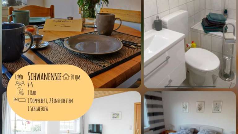 Die Ferienwohnungen am Schwanensee befinden sich in Plön, in der Nähe des Hauptbahnhofs Plön, der 400 m entfernt ist. Der Hauptbahnhof Kiel liegt 29 km entfernt, und der Flughafen Lübeck befindet sich in einer Entfernung von 58 km.