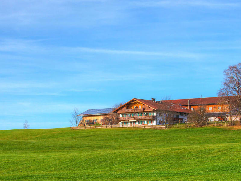 Bio- Bauernhof mit Ferienappartements in herrlicher Alleinlage. Freier Blick auf Berge, Königsschlösser und Hopfensee