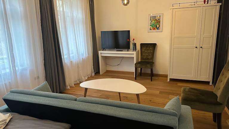 Die Ferienwohnungen Café Cup befinden sich in Detmold, 900 m vom Bahnhof Detmold und 4,1 km vom LWL-Freilichtmuseum entfernt. Der Flughafen Paderborn-Lippstadt ist 52 km entfernt.