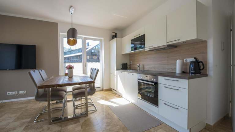 Da es sich um eine Ferienwohnung handelt, haben Sie die Möglichkeit, Ihre eigenen Mahlzeiten zuzubereiten und in der gemütlichen Umgebung Ihrer Unterkunft zu genießen. In der Nähe finden Sie jedoch auch verschiedene Restaurants und Cafés, in denen Sie lokale Spezialitäten probieren können.