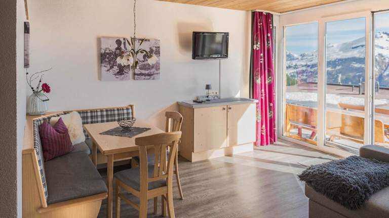 Haus Dorfblick bietet eine gemütliche Atmosphäre mit einem Garten und einer Terrasse sowie Blick auf die umliegenden Berge.