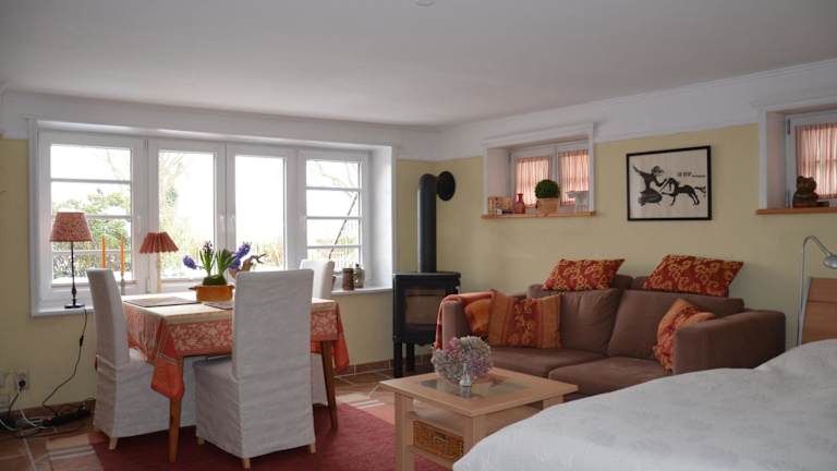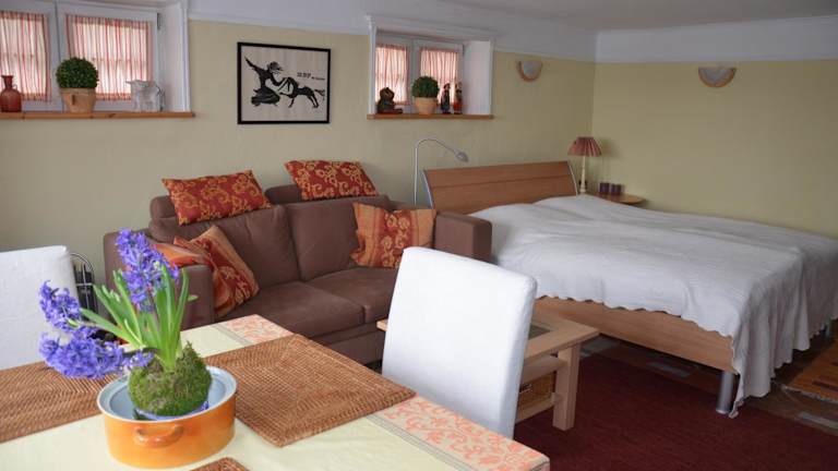Die Ferienwohnungen Himmelsstübchen und Gartenstübchen bieten freundlich eingerichtete Studio-Apartments mit gemütlichem Dekor. Die Zimmer sind geräumig und verfügen über Annehmlichkeiten wie Kabel-TV, einen DVD-Player und ein modernes Badezimmer. Bettwäsche und Handtücher werden zur Verfügung gestellt, so dass Sie sich um nichts kümmern müssen. Die voll ausgestattete Küche ermöglicht es Ihnen, Ihre eigenen Mahlzeiten zuzubereiten und sich wie zu Hause zu fühlen.