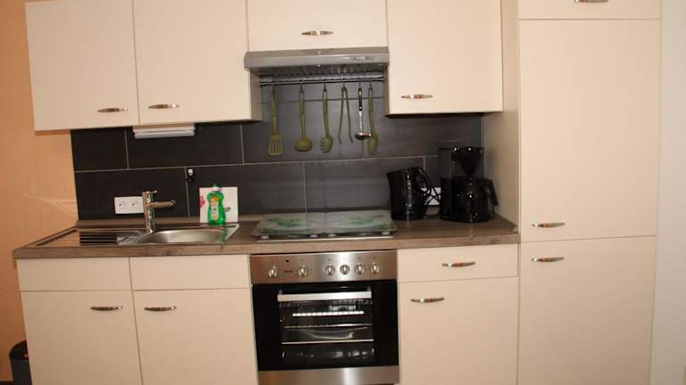 Die Ferienwohnung bietet eine voll ausgestattete Küchenzeile mit Kühlschrank und Kaffeemaschine zur Selbstverpflegung. Grillmöglichkeiten sind ebenfalls vorhanden, um die Gäste die Möglichkeit zu geben, im Freien zu speisen.