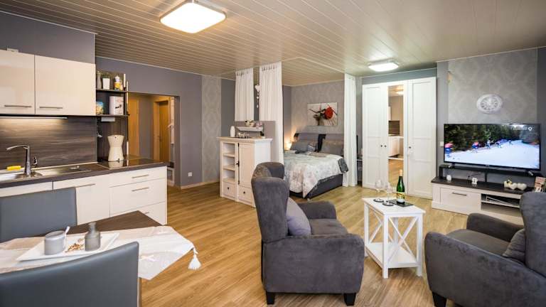 Die Ferienwohnungen Klaus u. Bärbel bieten komfortable Apartments mit Gartenblick. Jedes Apartment verfügt über eine Terrasse, auf der Sie die frische Luft genießen können. Im Inneren finden Sie einen gemütlichen Sitzbereich und einen Flachbild-Sat-TV. Die voll ausgestattete Küchenzeile umfasst einen Kühlschrank, einen Geschirrspüler, einen Backofen, eine Mikrowelle, eine Minibar, eine Kaffeemaschine und einen Wasserkocher. Das eigene Badezimmer ist mit einer Dusche und einem Haartrockner ausgestattet.