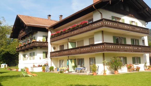 Urgemütliche Ess- und Wohnstuben mit liebevoller Einrichtung im bayrischen Stil und ein großer Garten mit Liegewiese laden zum Ausruhen und Erholen ein. Telefon, Kabel-TV und Internet sind für Sie ebenso vorhanden, wie ein überdachter Platz für Fahrräder (bei Anfrage auch für PKW) sowie ein beheizter Abstellraum für Ski und dergleichen.