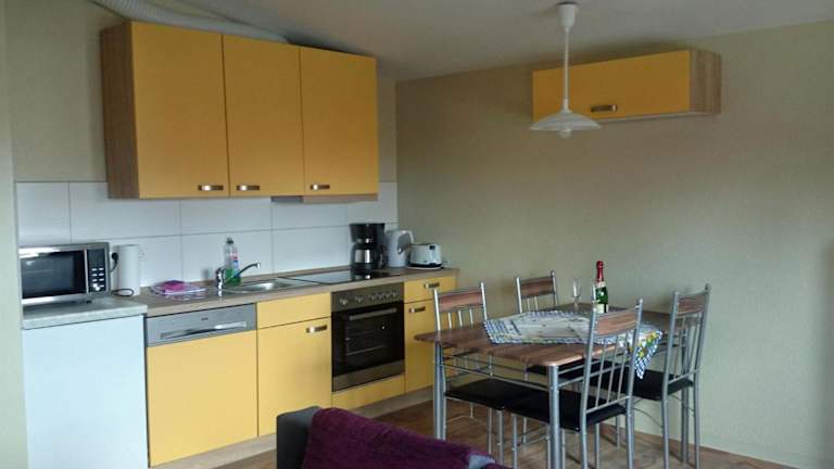 In den Ferienwohnungen steht eine gut ausgestattete Küche zur Verfügung, die mit einem Kühlschrank, einem Geschirrspüler, einem Ofen und einer Kaffeemaschine ausgestattet ist. Somit haben die Gäste die Möglichkeit, ihre Mahlzeiten selbst zuzubereiten.