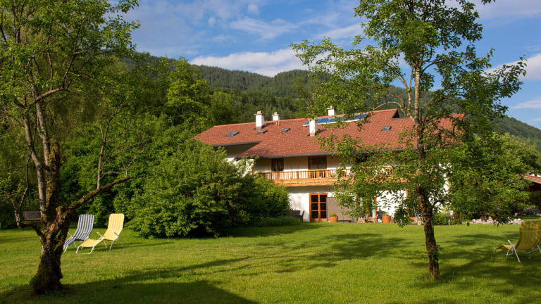 Exklusive 5-Sterne Ferienwohnungen. Unser ganzjährig geöffnetes Gästehaus mit bestens ausgestatteten Ferienwohnungen für 2 - 4 Personen liegt in herrlicher Tallage im idyllischen Ramsau, einem Ferienort umgeben von herrlicher Landschaft, ganz im Südosten Oberbayerns. Entspannung pur in großer Gartenanlage mit Forellenteich und Grillplatz, Liegewiese, Tischtennis. Zentral und ruhig gelegen, Gasthäuser mit gutbürgerlicher Küche sowie Einkaufsmöglichkeiten und den Kurpark mit Solegradierwerk finden Sie in unmittelbarer Umgebung.