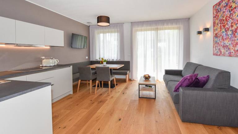 Die klimatisierten Unterkünfte in den Ferienwohnungen Ortsried verfügen über geräumige Terrassen oder Balkone, von denen aus Sie den Blick auf die Berge und den Garten genießen können. Die Zimmer sind komfortabel eingerichtet und bieten einen gemütlichen Sitzbereich sowie einen Flachbild-Sat-TV. Die Küchenzeile ist mit einem Kühlschrank, einem Geschirrspüler, einem Kochfeld, einer Kaffeemaschine und einem Wasserkocher ausgestattet. Hier finden Sie alles, was Sie für einen angenehmen Aufenthalt benötigen.