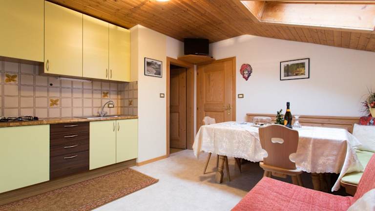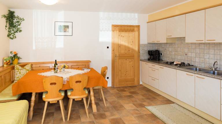 Die Wohneinheiten sind mit einer Küchenzeile ausgestattet, die einen Kühlschrank, Herdplatte, Toaster, Kaffeemaschine und Wasserkocher umfasst. Ein Essbereich ist ebenfalls vorhanden.