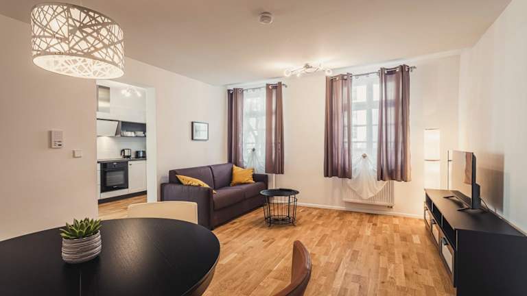 Die Wohneinheiten sind mit Parkettböden ausgestattet und verfügen über eine voll ausgestattete Küche. Diese beinhaltet einen Kühlschrank, Geschirrspüler, Ofen und Herdplatte. Ein Essbereich sowie ein Flachbild-TV mit Satellitenkanälen sind ebenfalls vorhanden. Jedes Zimmer hat ein eigenes Badezimmer mit Dusche und Haartrockner.