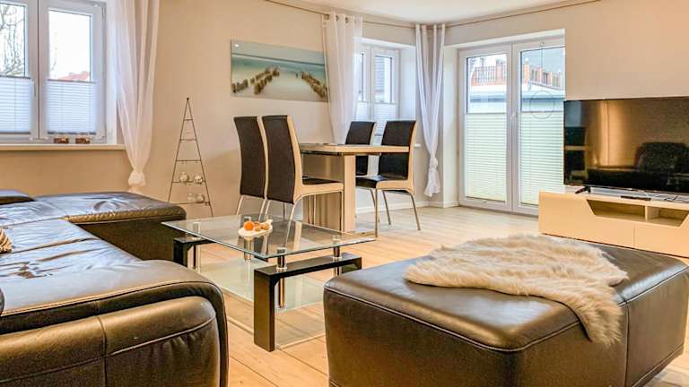 Die Ferienwohnungen und Ferienhäuser Gohr bieten Ihnen komfortable Unterkünfte zur Selbstverpflegung. Jedes Apartment verfügt über einen gemütlichen Sitzbereich mit einem Sofa und einem Flachbild-TV. Einige Unterkünfte bieten zudem einen Balkon, von dem aus Sie einen herrlichen Blick auf die malerische Altstadt von Stralsund genießen können. In allen Apartments finden Sie eine voll ausgestattete Küche vor, in der Sie Ihre eigenen Mahlzeiten zubereiten können.