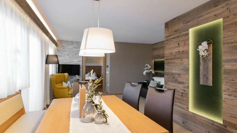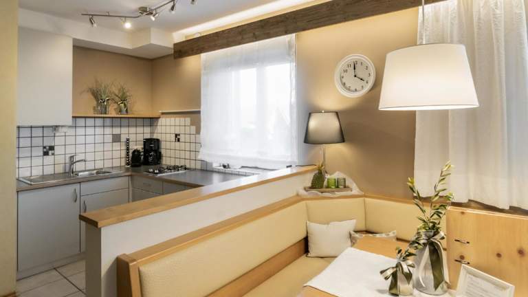 Für die Selbstverpflegung stehen in jeder Wohneinheit eine voll ausgestattete Küche sowie ein Esstisch zur Verfügung. Essenslieferungen in die Unterkunft sind gegen Aufpreis möglich. Auch die Bereitstellung von Wein oder Sekt ist auf Anfrage möglich.