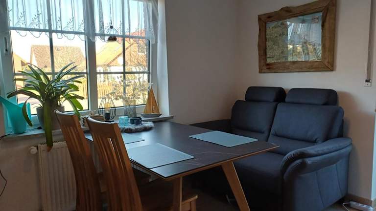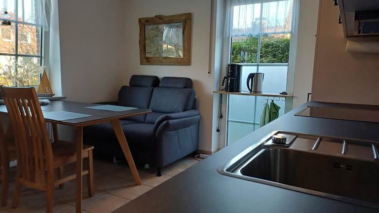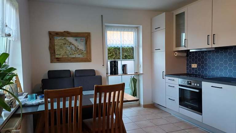 Die Ferienwohnung verfügt über ein Schlafzimmer, ein Wohnzimmer, ein Badezimmer mit Dusche sowie eine gut ausgestattete Küche mit Kühlschrank und Geschirrspüler. Ein Flachbild-TV ist ebenfalls vorhanden. Handtücher und Bettwäsche werden bereitgestellt.