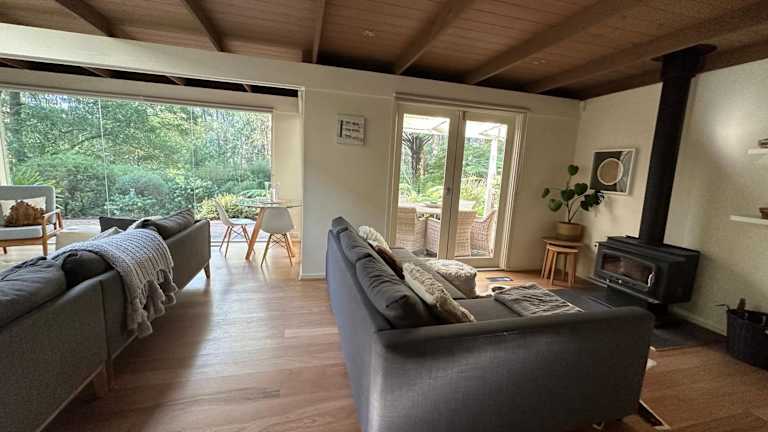 Fernview on Falls bietet eine moderne Unterkunft mit kostenlosem WLAN und Gartenblick. Die Ferienunterkunft umfasst ein Ferienhaus mit Klimaanlage, das in einem ruhigen und naturnahen Umfeld liegt. Die Unterkunft richtet sich an Gäste, die Wert auf eine entspannte Atmosphäre legen, jedoch keine Junggesellenabschiede oder ähnliche Feiern gestattet sind. Das Haus wird von einem privaten Gastgeber geführt.