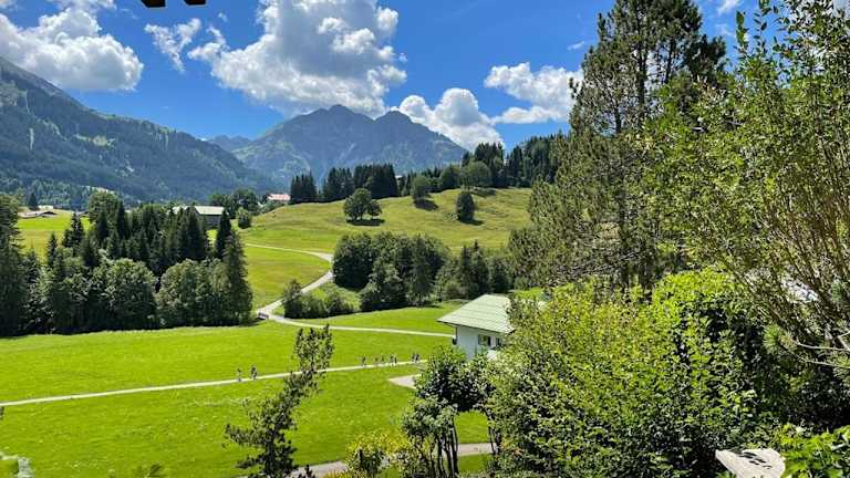Die Unterkunft befindet sich in Hirschegg, umgeben von einer malerischen Landschaft.
