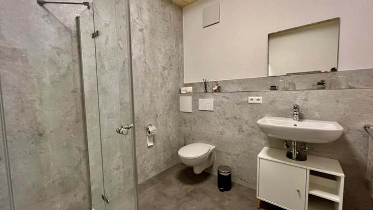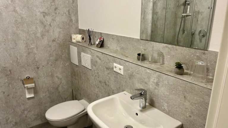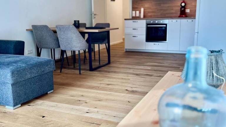 Die Ferienwohnung umfasst zwei Schlafzimmer, ein Wohnzimmer und ein Badezimmer mit Dusche. Zur Ausstattung gehören ein Flachbild-TV, eine gut ausgestattete Küchenzeile mit Kühlschrank und Geschirrspüler sowie Handtücher und Bettwäsche. Die Unterkunft ist eine Nichtraucherunterkunft und die Reinigung erfolgt gemäß den Richtlinien der örtlichen Behörden.