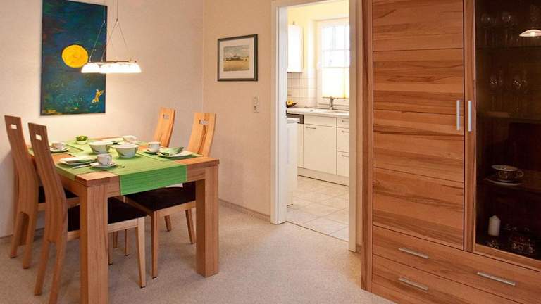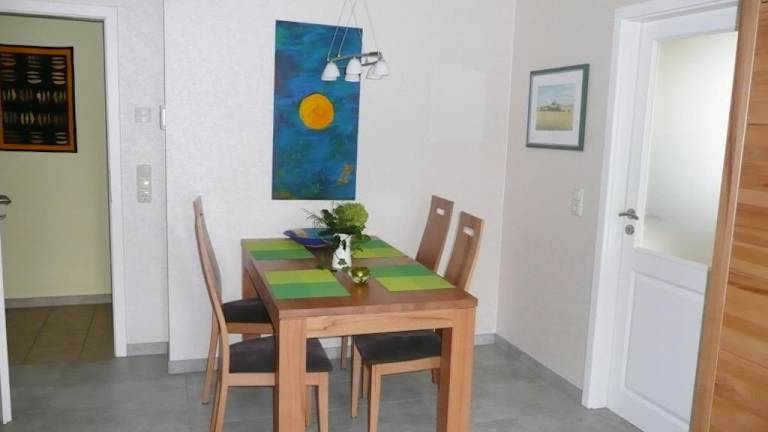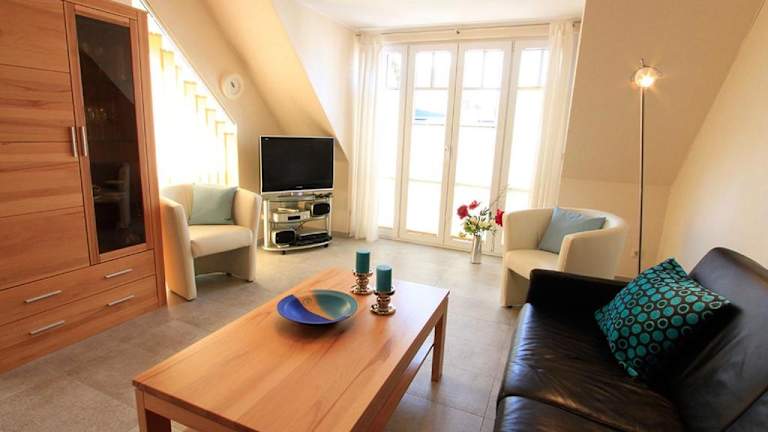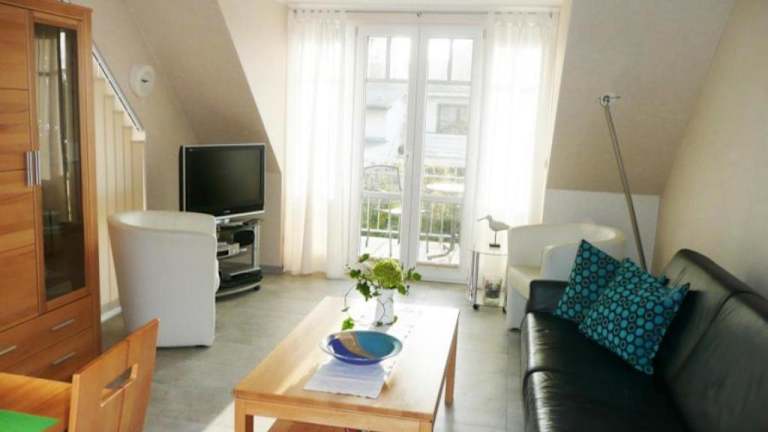 Fewo 217 Ferienwohnung Meerglück in der Villa Rosita bietet eine moderne Ausstattung und Zugang zu einem Balkon, kostenlosen Privatparkplätzen sowie kostenlosem WLAN. Die Ferienwohnung erstreckt sich über verschiedene Wohnbereiche, die für einen angenehmen Aufenthalt sorgen.