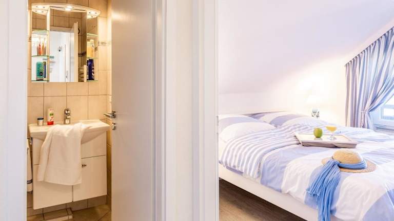 Die Ferienwohnung verfügt über ein Schlafzimmer, ein Wohnzimmer, das mit einem Flachbild-TV mit Satellitenkanälen ausgestattet ist, sowie eine voll ausgestattete Küchenzeile mit Kühlschrank und Geschirrspüler. Das Badezimmer ist mit einer Dusche ausgestattet.