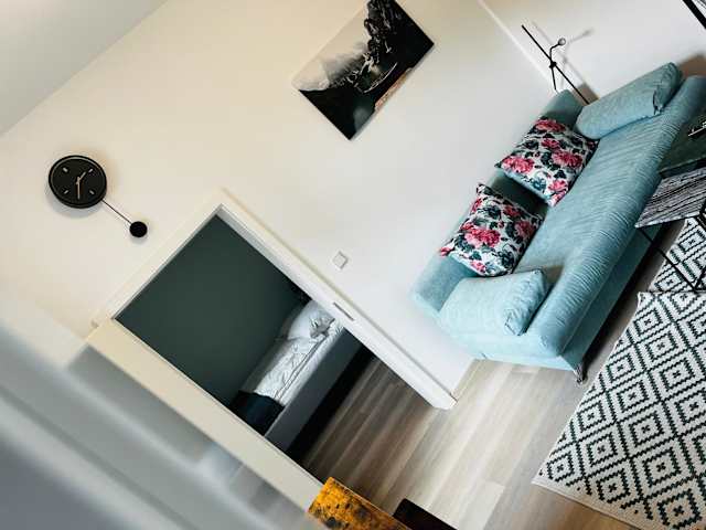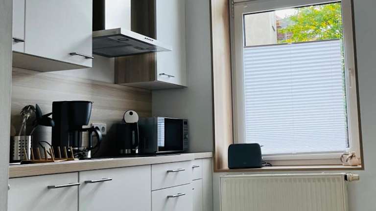 Die Ferienwohnung verfügt über ein Schlafzimmer, ein Wohnzimmer mit einem Flachbild-TV sowie eine voll ausgestattete Küche, die unter anderem einen Kühlschrank umfasst. Darüber hinaus steht ein Badezimmer zur Verfügung. Handtücher und Bettwäsche werden bereitgestellt.