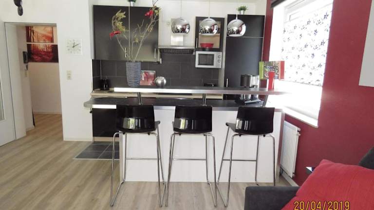 Die Ferienwohnung verfügt über ein Schlafzimmer und ist ausgestattet mit einem Flachbild-TV mit Satellitenkanälen. Eine voll ausgestattete Küche ist vorhanden, die mit einem Kühlschrank und einem Geschirrspüler ausgestattet ist. Zudem gibt es eine Terrasse, die den Gästen zur Verfügung steht.
