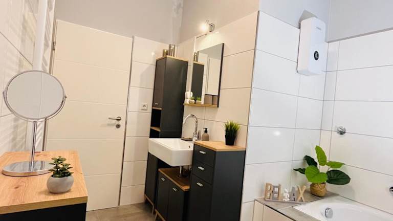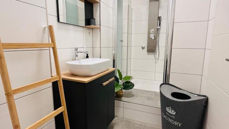 Die Ferienwohnung verfügt über 3 Schlafzimmer, eine vollständig ausgestattete Küche mit Kühlschrank und Geschirrspüler, einen Flachbild-TV und einen Sitzbereich. Es sind 2 Badezimmer vorhanden, die jeweils mit einer Dusche ausgestattet sind. Handtücher und Bettwäsche sind in der Unterkunft verfügbar.